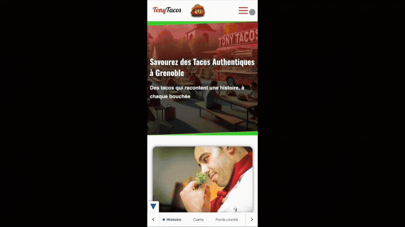 Non-intrusive: the mobile menu stays discreet and never blocks the main content.